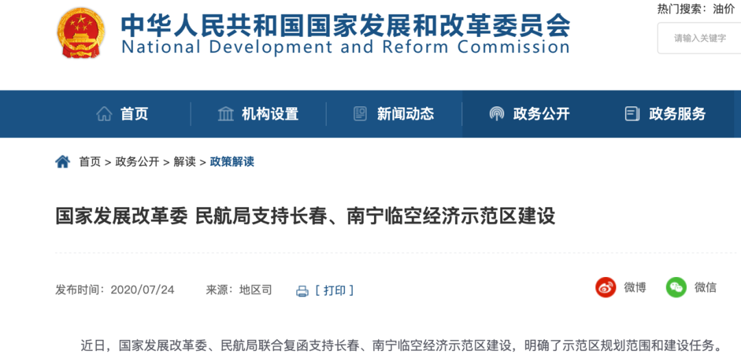 日前,国家发展改革委、民航局联合复函支持长春、南宁临空经济示范区建设,并明确了示范区规划范围和建设任务。