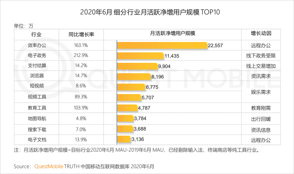 1.1 疫情影响未完全消除,线上需求持续释放,全网月活跃用户规模到5月达到峰值,随着复工复学回归正常6月稍有回落;2020年上半年全网净新增用户规模超过去年全年
