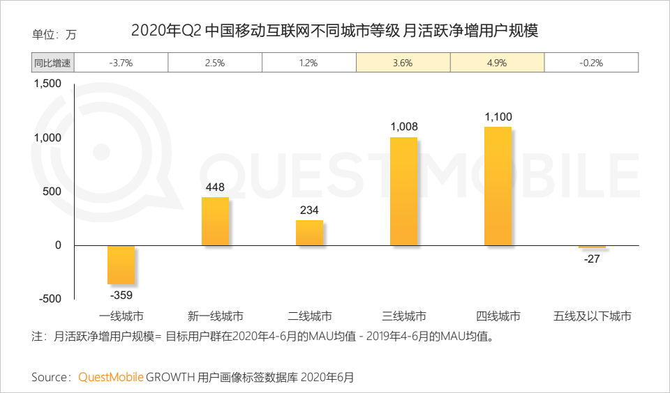3.2 从城市等级来看,下沉区域用户增长呈现分化,三四线用户构成全网用户主要增量来源