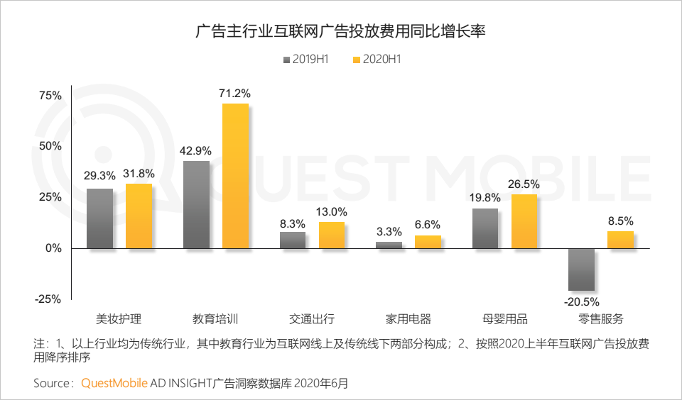 1.1 受疫情改变,消费者与品牌的触点对线上渠道依赖增强,典型行业加大线上广告投放预算,刺激消费