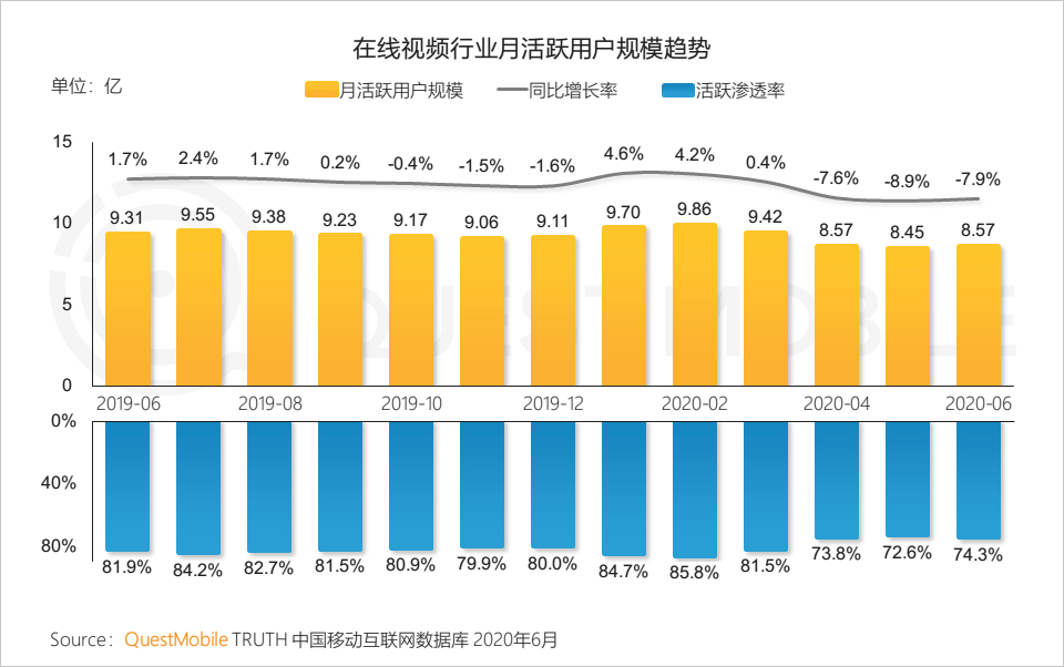 2.1 疫情宅家,用户时间充足,推动在线视频行业增长,随复工复产回复常态,行业用户规模有所回落并稳定在8.6亿