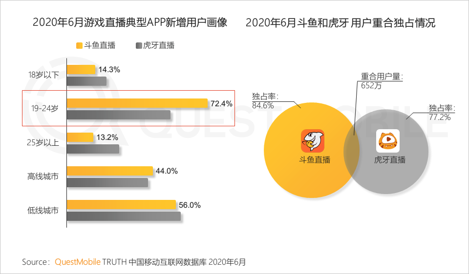 4.2 游戏直播行业头部玩家斗鱼和虎牙两强争霸,两者用户群体上存在差异性,在圈层人群的渗透上各有优势