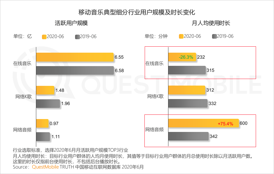 5.2 细分行业出现分化,在线音乐用户粘性下降,而网络K歌用户被其他娱乐方式分流,网络音频由于丰富的内容和对于碎片场景的抢占,使用时长大幅增加