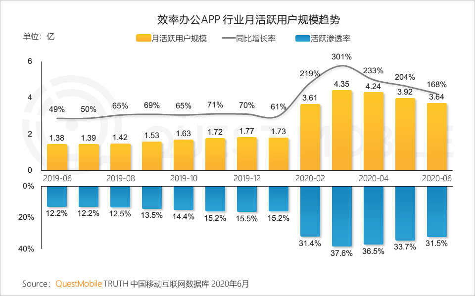 9.1效率办公行业受疫情影响,迎来爆发式增长,随着复工复产推进,用户有所回落,不过仍保持在3亿以上