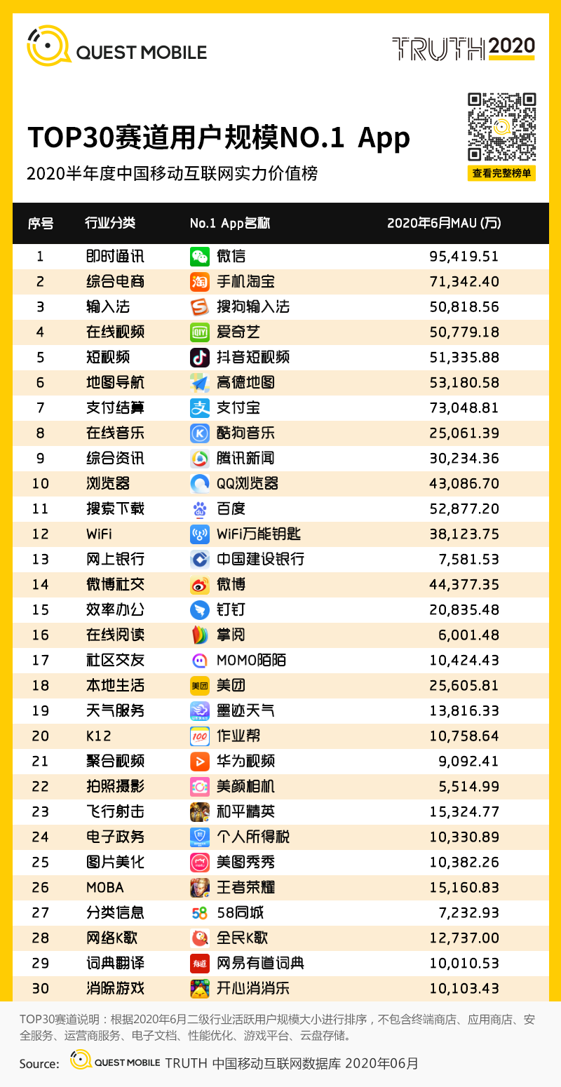 1、TOP30赛道用户规模NO.1 APP