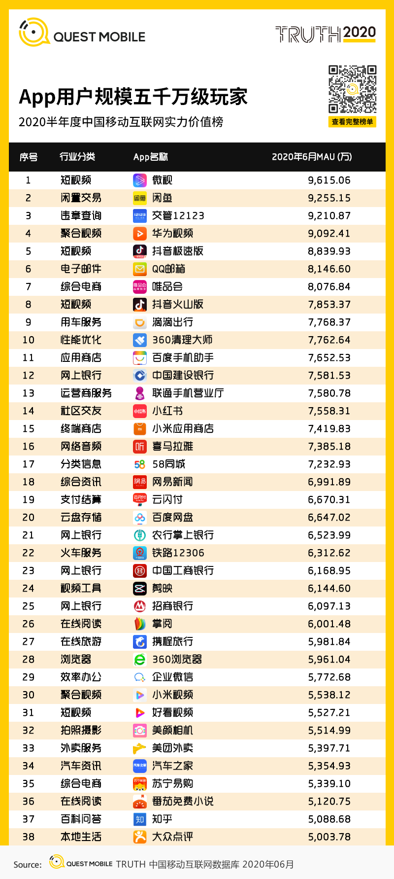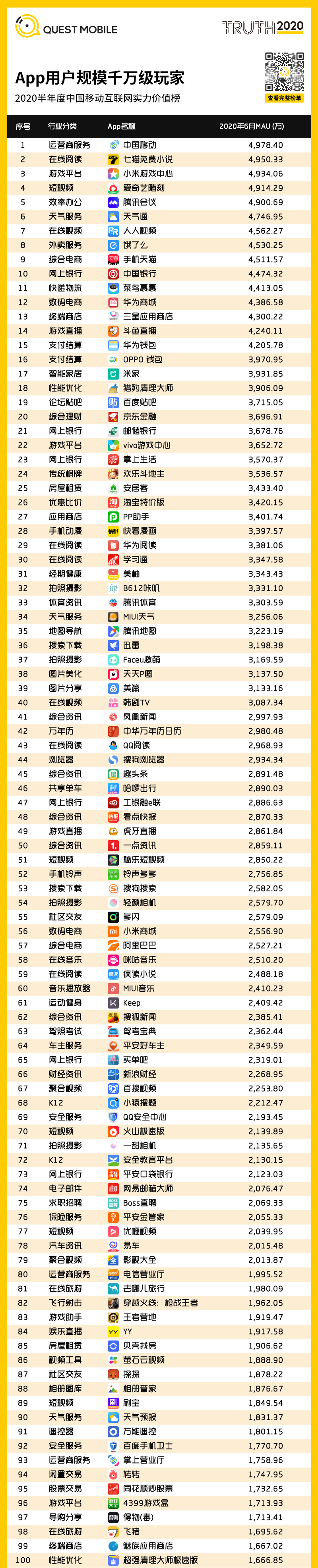 五 2020半年度中国移动互联网实力价值榜