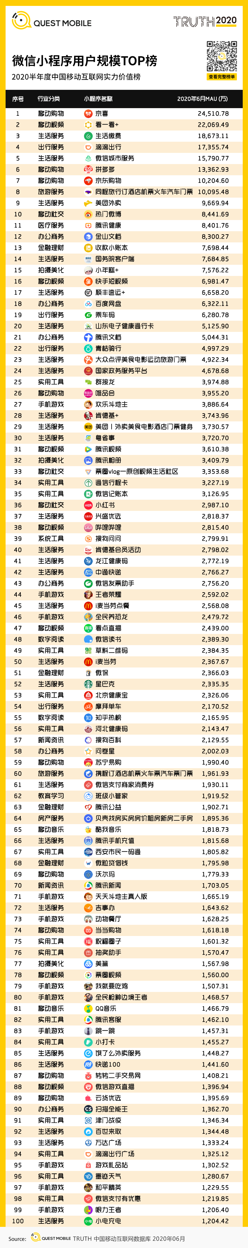 2.5 小程序成为重要流量入口,用户增长高于全网,为生活服务、视频类、购物类等应用带来大量用户,受疫情影响,医疗服务应用更是获得爆发性增长