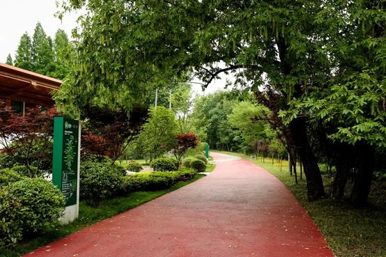 第一,利用老旧和现有道路改建。环紫金山绿道多利用市民爬山踩出的小路、废弃不用的老旧道路以及现有景区道路改建。绿道所有主次入口与周边交通系统互相连接,以便游客能方便快捷地到达绿道。环紫金山绿道采用红色透水混凝土铺装,不仅透水、防滑、耐磨,为使用者提供安全舒适的骑行空间,而且通过铺装材质区分绿道与景区其他道路系统,形成绿色的自然景观中一道靓丽的风景线。