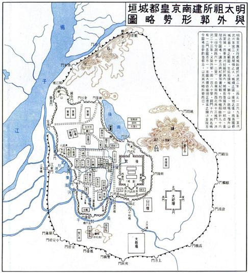 公元1366年,明朝定都南京,利用南唐都城的南面和西面城墙扩建成明都城城墙,由宫城、皇城、京城、外郭四重组成。宫城与皇城采用传统的中轴对称方形布局,京城和外郭则顺应自然山水走势,呈现不规则形态,成为中国古代都市建设史上的一个特例。如今通常所称的“南京明城墙”为京城墙,全长35.267公里,其中地面遗存25.091公里,遗址部分10.176公里。南京明城墙是世界最长、规模最大、保存原真性最好的古代城垣,高14-26米,宽7-19.75 米(最宽处达30 米)。城墙外环绕着护城河,现存31.2公里,城墙与护城河间距最宽处为334米,最窄处为9米。南京明城墙是中国古代军事防御设施、城垣建造技术集大成之作,是中国礼教制度与自然相结合的典范。