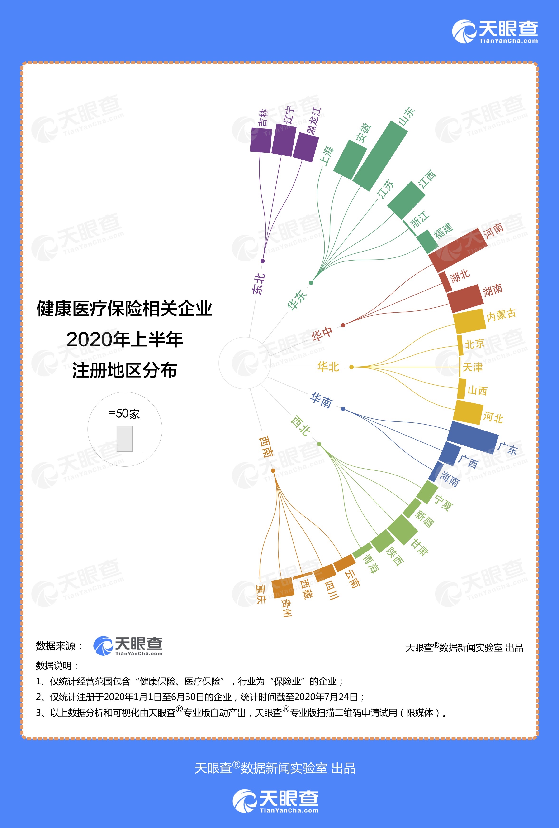 截至7月23日,以工商登记为准,天眼查专业版数据显示,我国今年上半年新增健康医疗保险相关企业数量超过1,200家,较去年同比增长97.2%。值得注意的是,今年4月新增相关企业595家,环比增长145%。今年新增的健康医疗保险相关企业中,山东省数量最多,新增超过150家;河南省次之,新增超过120家。