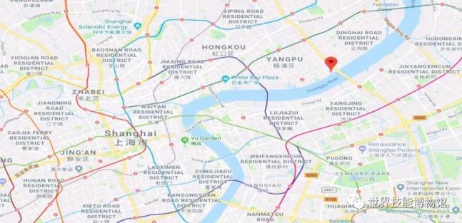 世界技能博物馆选址于上海市杨浦区杨浦滨江区域,位于杨浦大桥下,临江而立,周边环境优越、交通便捷。