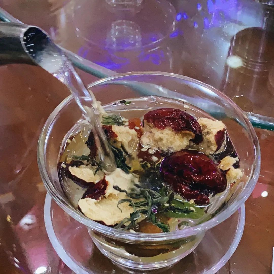 只蘸醋和辣子,配一盏三泡台。砖茶、红枣、桂圆、枸杞和黄冰糖调和,抿一口茶清香宜人,感觉还能再吃几大块。