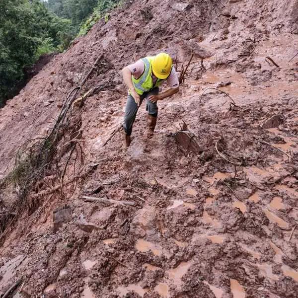 在四川达州,连续数日的大暴雨导致宣汉县清溪长青村发生山体滑坡,造成光缆被埋,影响长青村近百户用户宽带使用。移动人接到消息后立即赶往现场清理被埋光缆。道路被泥石流冲毁,移动人在泥泞中一步一步前往故障点。