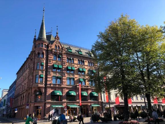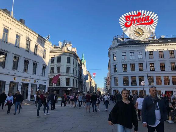 挪威皇宫和议会大厦分别在这条大街的两端,中间有博物馆,国家剧院,道路两旁各种花圃,长椅,喷泉,咖啡馆。