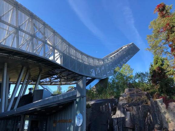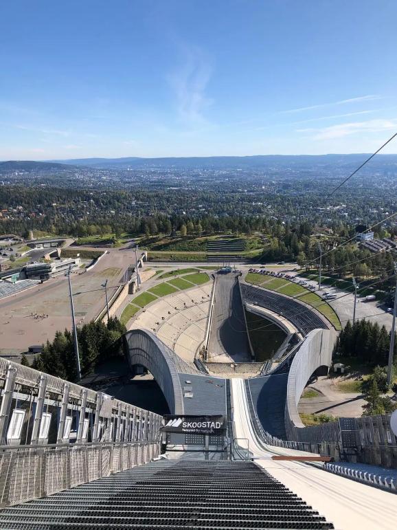 霍尔门考伦山是挪威的滑雪圣地,风景优美,位于奥斯陆东北约 13 公里处。霍尔门考伦跳雪台醒目地立在海拔 371 米的霍尔门科伦山上,是世界最高(高84米,长126米)的滑雪跳台。