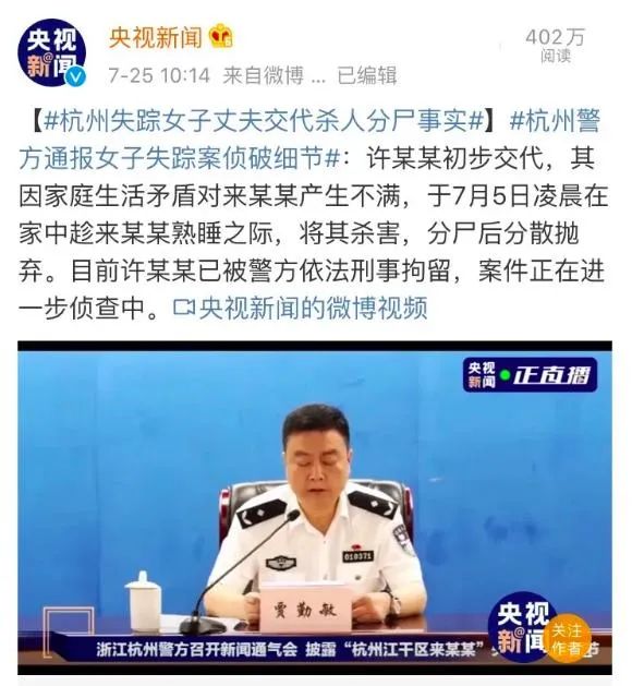 而杀害来女士的不是别人,正是向警方报失踪案的丈夫许某。