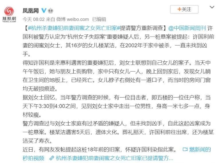 在杭州杀妻案事件告破后,一则18年前悬案也走进了大众的视野。
