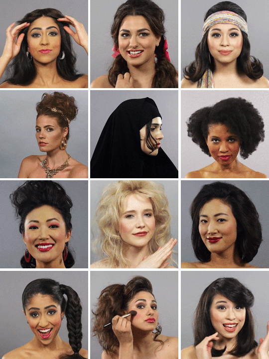 短短一分多种,展现从1910年到2010年的标志性时尚妆容。