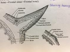 先来看看牛角到底是由什么构成的吧!一头完全成熟没有去角的牛,角从内到外分别是和头骨连接的中空的骨头(cornual process)、真皮(corium)和角质。其中角质是由角的根部真皮的特殊细胞epiceras长出来的。