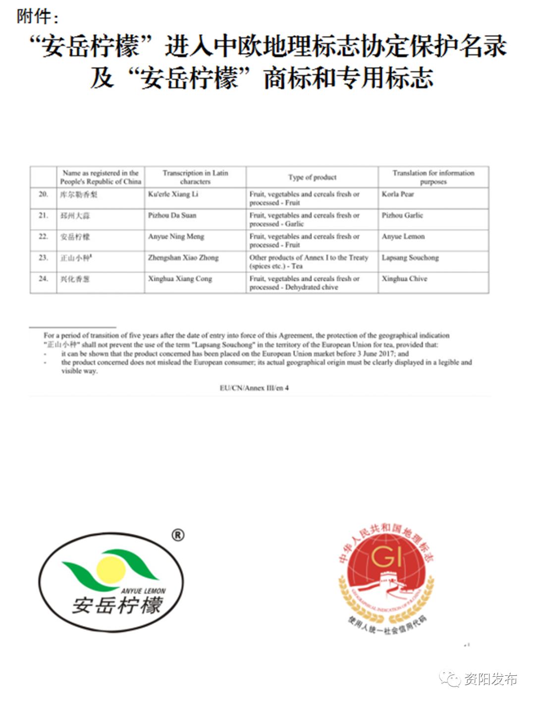 原标题:《这就是实力!“安岳柠檬”入选首批欧盟保护地理标志名单》