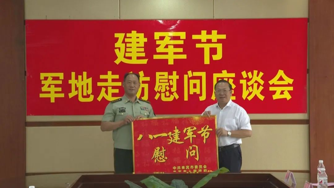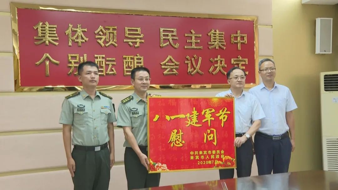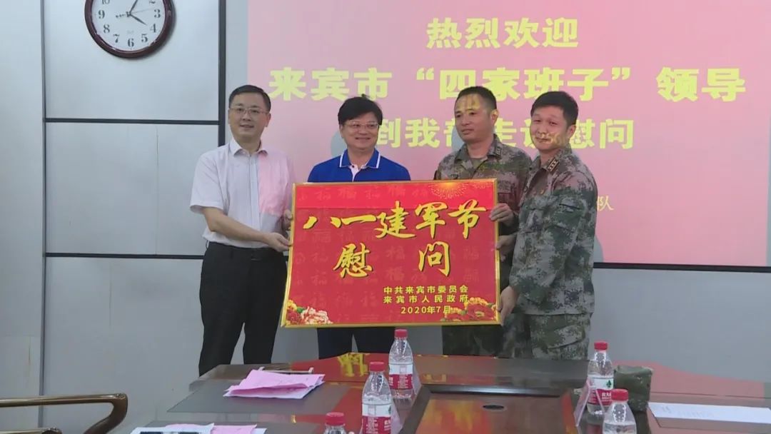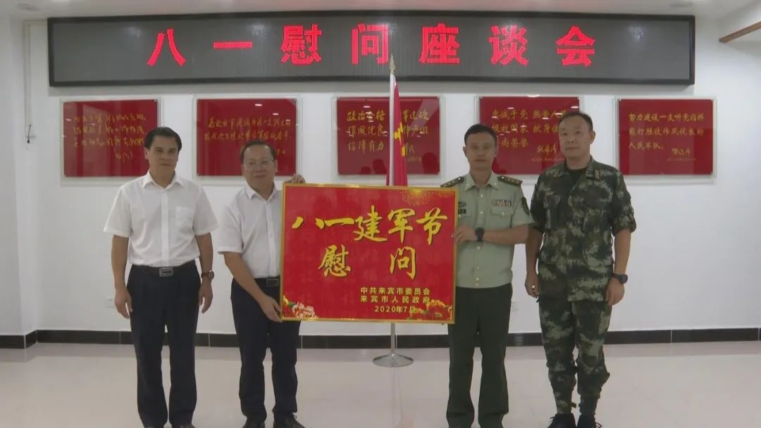 在八一建军节即将来临之际,市委书记农生文,市长雷应敏,市人大常委会主任庞标益等市领导带着全市270万各族人民的深情厚谊,分别率队慰问了来宾军分区、武警来宾支队、广西陆军预备役步兵师第一团、32560部队、31650部队向驻地官兵致以节日的问候,对他们为来宾经济社会发展作出的贡献表示衷心感谢。