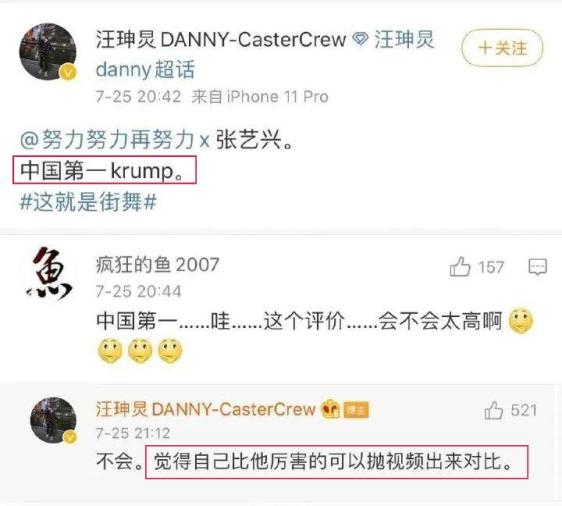 国内街舞大师汪坤炅,就立马在微博上大赞张艺兴: