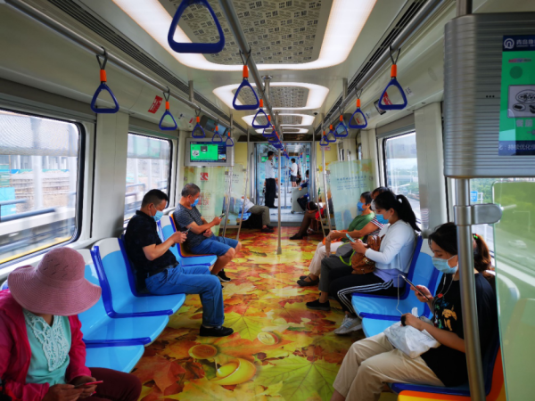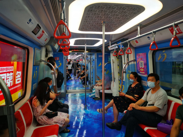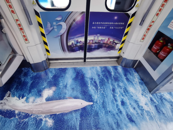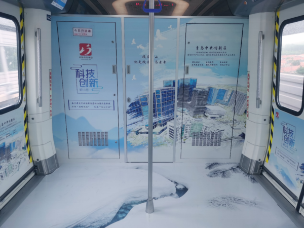 “崂山号”地铁专列车厢分别以富有区域特色的海洋主题及春夏秋冬景色主题展示了崂山区的文化旅游、金融财富、科技创新、生态健康四大版块,对全区在经济、文化、创新及生态健康等方面的众多成果进行了多元化、沉浸式场景呈现。