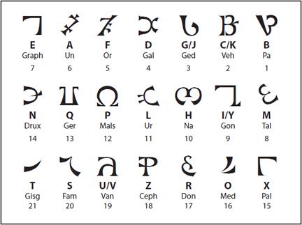 1583年3月,在凯利和迪伊例行与天使沟通时,据说凯利开始出现了幻象,幻象内容是他所不熟悉的一份字母表;接着,在不久之后的另一次沟通期间,他收到了第一份使用这种字母书写的文本。