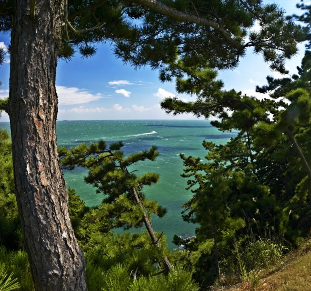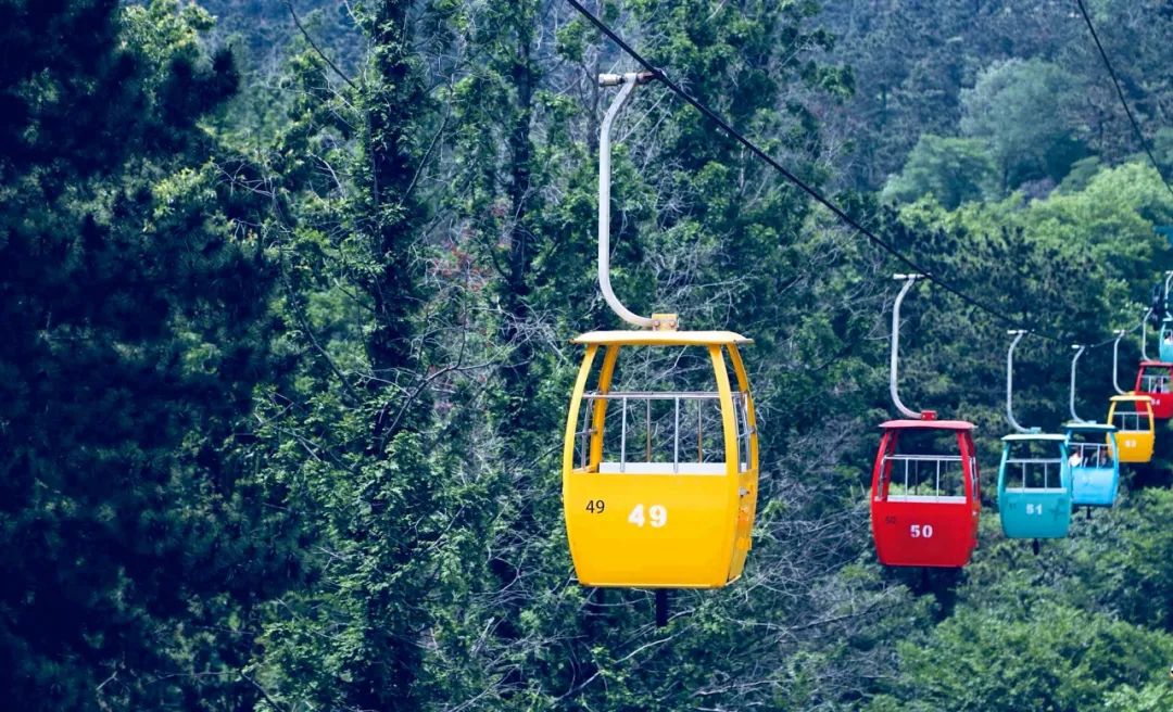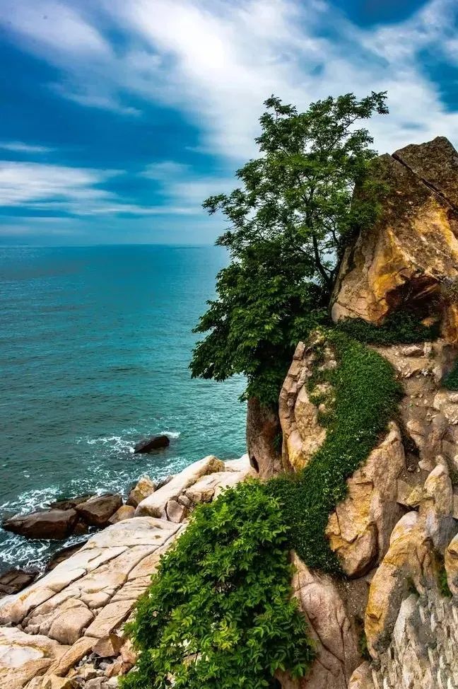 在这里,近处是郁郁葱葱的树木,远处是可以让人洗眼睛的蓝色,迎面吹来的海风不温不燥,它穿过树隙,裹挟着花草的芳香,撞了你一个满怀。天气晴好时,一定要搭乘索道,穿过层层密林,领略刘公岛的全风貌。