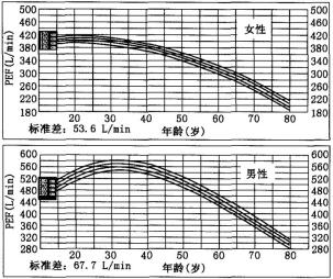 PEF所测定的最高值需与正常预计值进行比较。正常预计值受检查仪器、受试者的年龄、身高、体重、性别和种族等因素的影响。