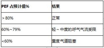 一般采用PEF实测值占正常预计值的百分率来判断。