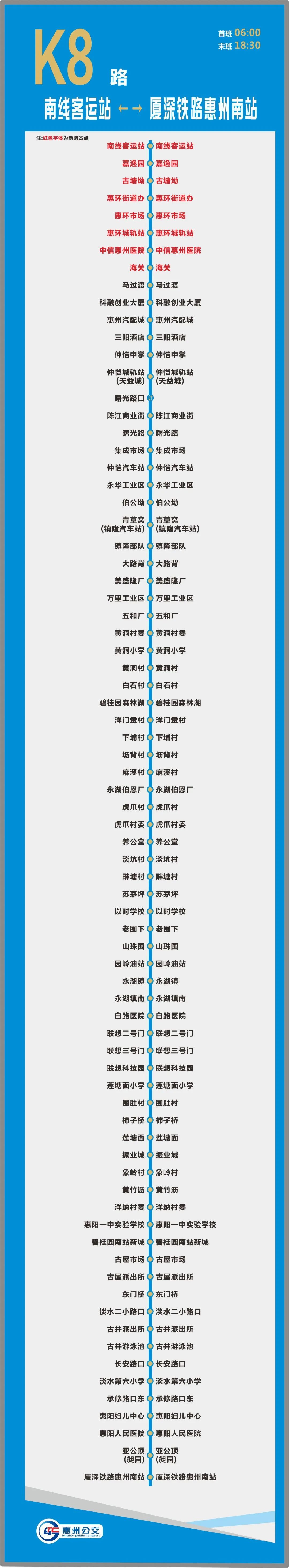 新增站点:海关、中信惠州医院、惠环城轨站、惠环市场、惠环街道办、古塘坳、嘉逸园、南线客运站等8个站点