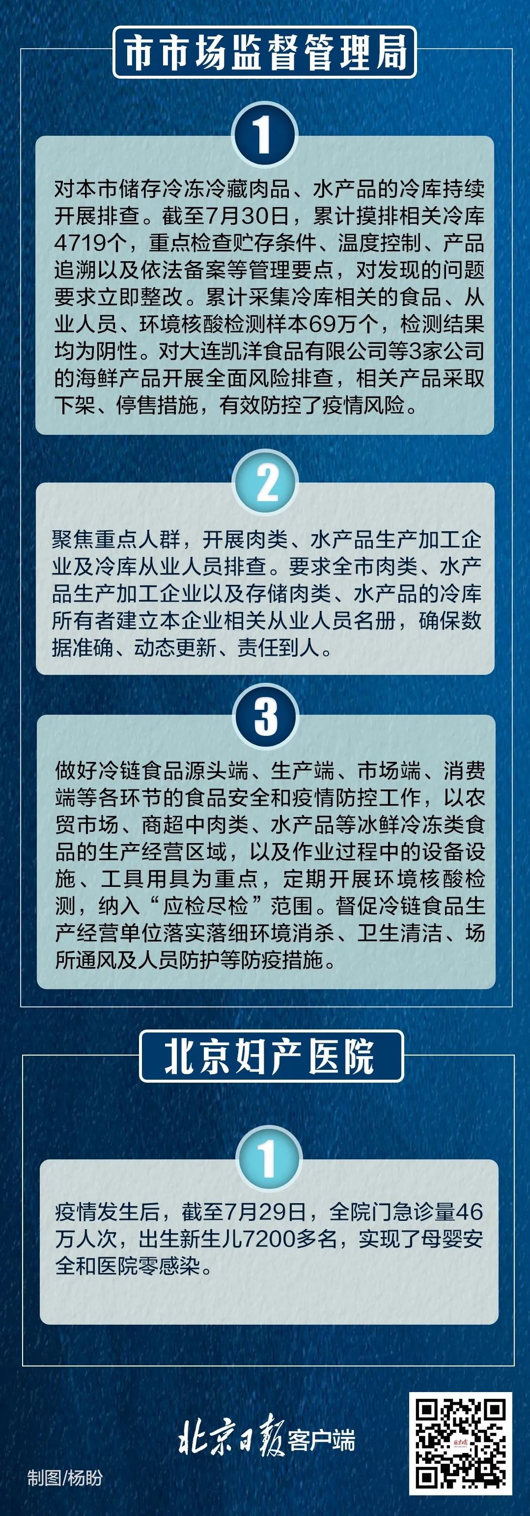 北京对大连凯洋食品有限公司等3家公司的海鲜产品开展全面风险排查,相关产品采取下架、停售措施,有效防控了疫情风险。