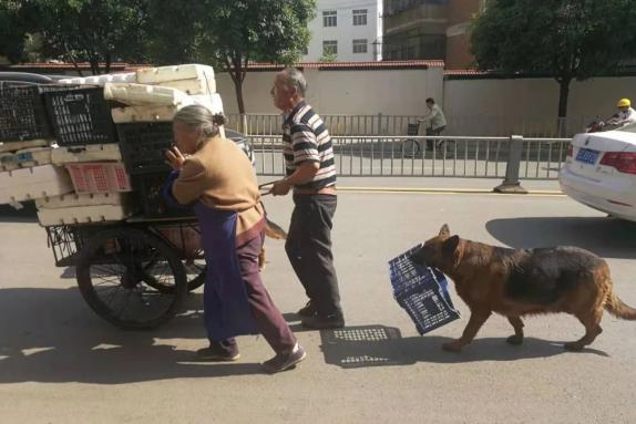 凡哥点评:已是退休养老的年龄,这对老人却还在从事繁重的劳动,懂事的狗狗也在努力分担主人的重担。作者是在感叹民生多艰啊。