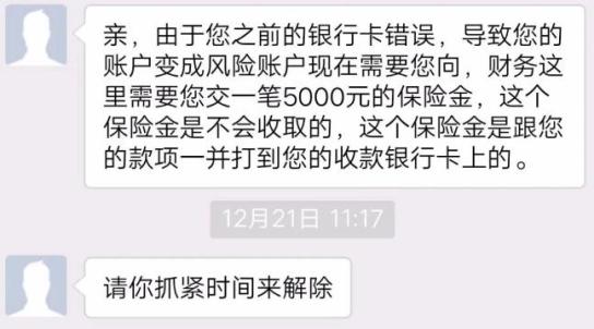 折腾了半天,到手的钱冻结了,而且还提前给了“包装费”“工本费”这搁谁谁心里都得有气啊,况且帐号冻结了按合同照样还得还钱,大多数受害人都会着急上火也顾不得分辨是不是有猫腻了,而这时就要进入诈骗的第八步“解冻账户”。
