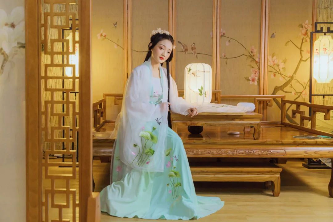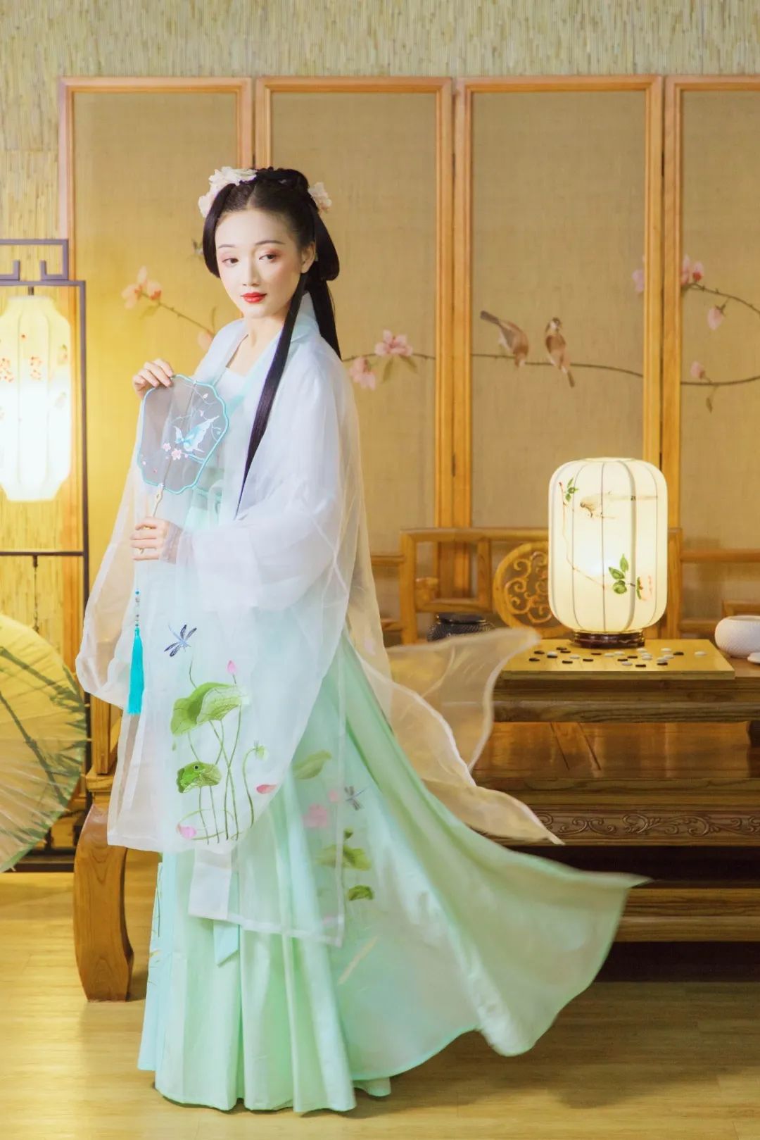 她们身着羽衣霓裳、汉服、簪子、纸扇……