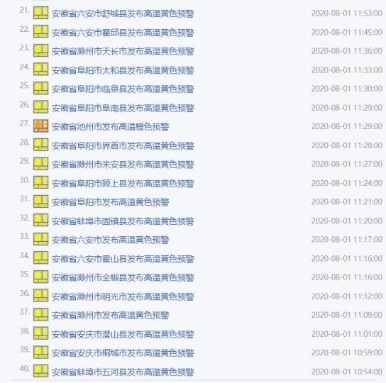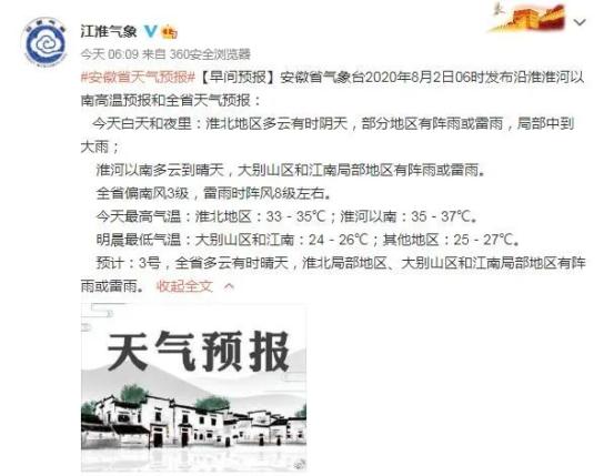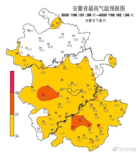 今天最高气温:淮北地区:33-35℃;淮河以南:35-37℃。