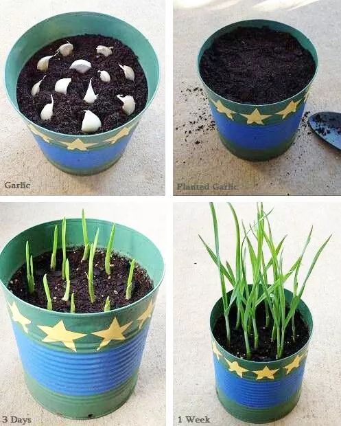 种植材料:容器、蒜瓣、土壤