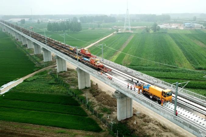 这标志着连徐高铁铺轨施工完成连云港段,并开始拉开徐州段铺轨的序幕。