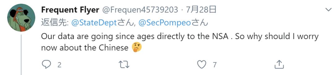还有网友讽刺称,比起担心中国,美国人更应该担心个人数据被泄露至美国国安局。↓