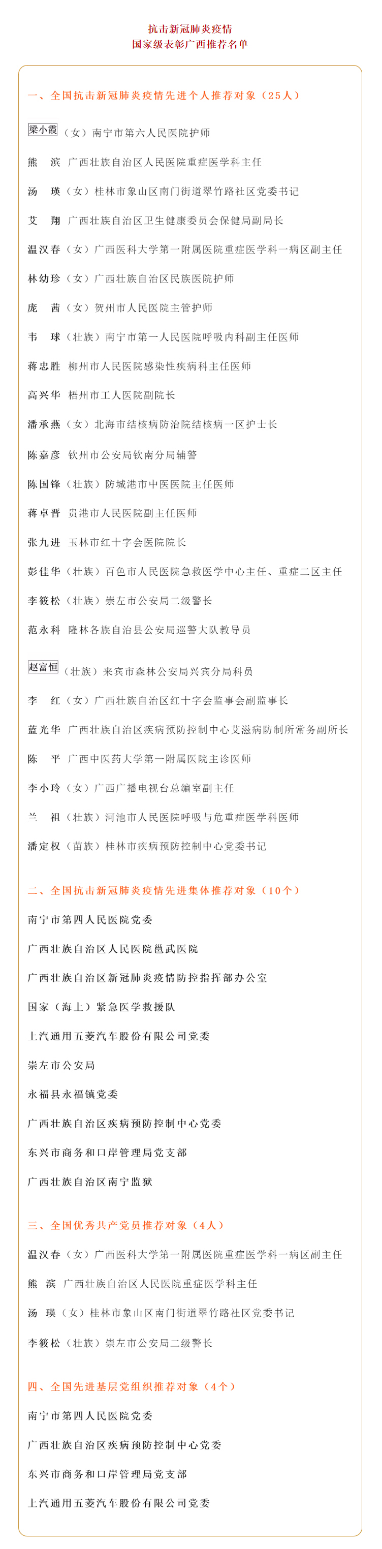 抗击新冠肺炎疫情国家级表彰广西推荐名单公示