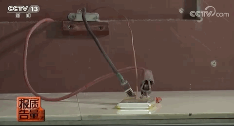 从此次监督抽查不合格的充电宝中取出的电芯,检测人员在给它充电后,整个电芯冒出了浓烟,外壳发生严重变形。