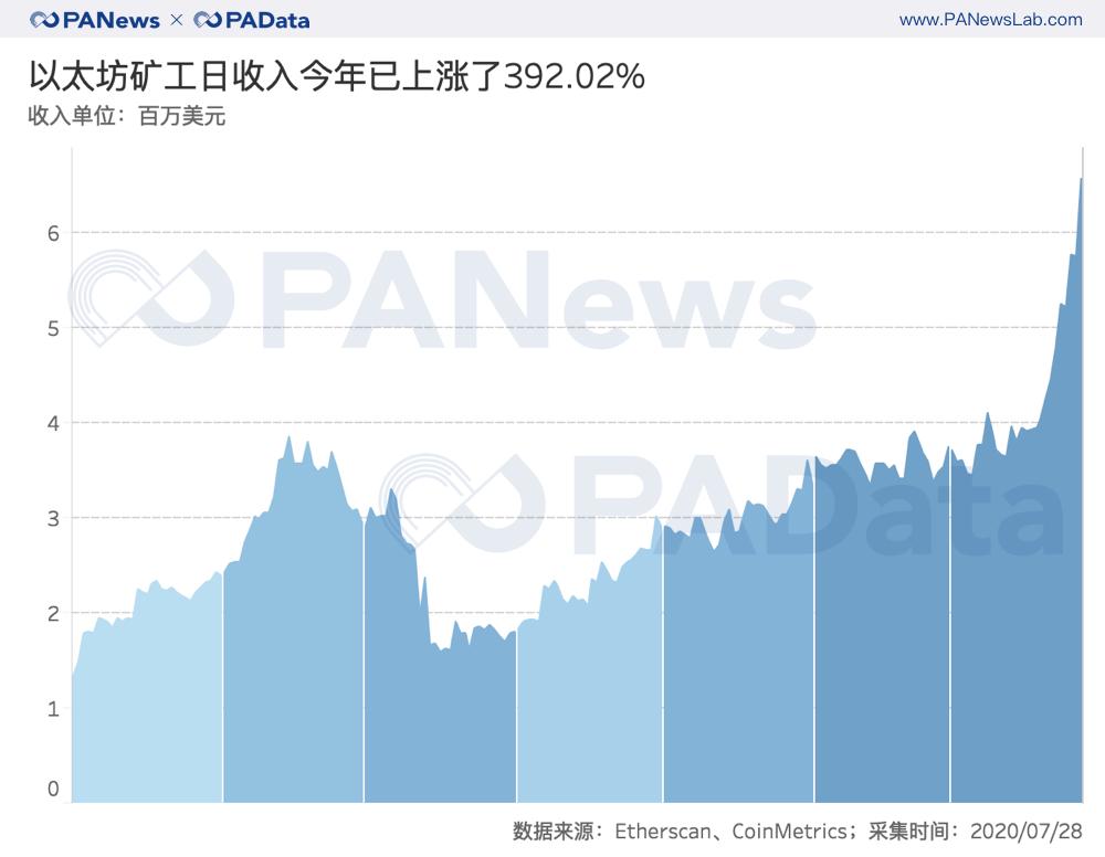 今年以来,矿工单日总收益上涨392%,7月27日单日总收益突破600万美元,Gas费占比已超36%。