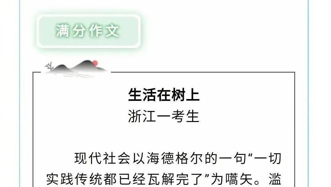 以上语句来自于一篇名为《生活在树上》的浙江省2020年高考满分作文首段。