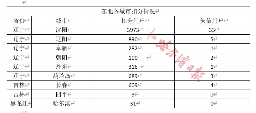 沈阳市因为运营时间最长,目前已有3973名用户被扣分,33名用户被永久封号;