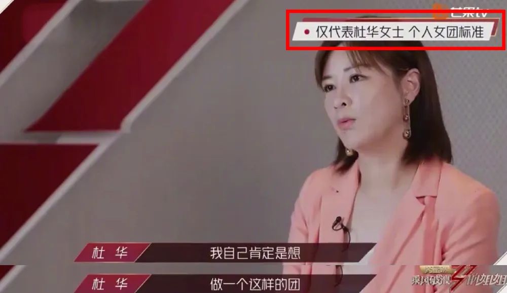 但是,当留下成为最大的需求时,满足现场观众的口味就显得更为重要。于是,呈现的结果就是《乘风破浪的姐姐》正在向着打造一支“舞蹈整齐”、“唱跳兼具”的女团进发。可节目的最初,当杜华说着:“ 女团的话,它就应该是整齐划一的,漂亮美丽的、青春靓丽的”时,屏幕右上方打着的是“仅代表杜华女士个人成团标准。”