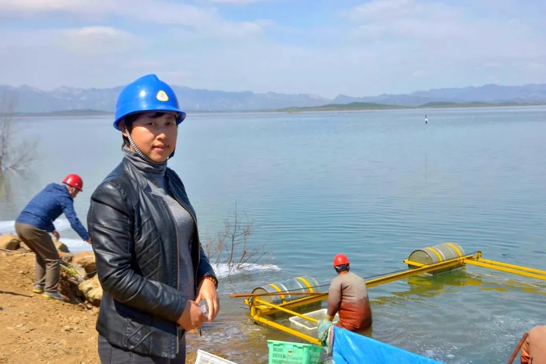 李春伶,女,52岁,密云区农业服务中心技术推广。在保水过程中,李春伶重点参与了密云水库增殖放流和水产养殖专项治理,2015年在技术人员的共同努力下,成功研发出自动化增殖放流系统,降低了劳动强度,提高了效率和放流鱼种成活率,2017年春季正式投入使用,并顺利完成增殖放流任务,净水鱼苗以浮游植物和浮游动物为食,一方面可在不投喂人工饲料的情况下生产优质水产动物蛋白,另一方面可直接消耗水体中过剩的藻类,降低水体的氮、磷含量,起到消除水体富营养化的效果,改善水环境,防治水体的富营养化,有助于保障密云水库水质和渔业可持续发展。增殖放流工作属于野外作业,只要现场放流工作一启动,就意味着每天都要坚守在库边,一守就是20天左右,作为一名女同志,她没有一句怨言,而是努力克服困难。为了不影响工作,她每天基本上不喝水,这样一来就不需要上厕所,不会因为岗位上缺人,而影响工作的连续性。李春伶说:“一想到投放的净水鱼苗将成为保护水库水质的‘清洁卫士’,再苦再累都觉得是那么值得,保水人的自豪感就会涌上心头。 ”