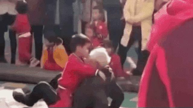 学校的操场上,有这样一对“奇怪”的爷孙。