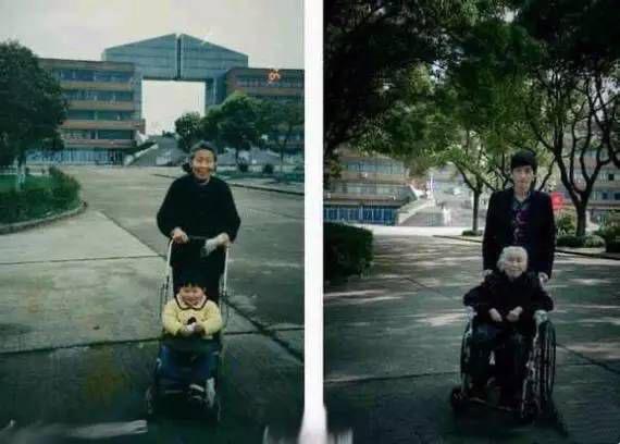 20年后,孙子推着轮椅上的奶奶,满脸骄傲。