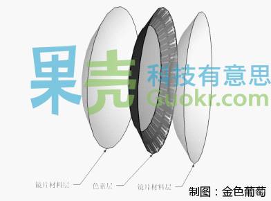 目前主流厂商普遍采用把色素层包埋在隐形眼镜之内的“三明治”模式(也称包覆技术、包覆式设计),将色素与眼表完全隔绝开的,保证了安全,这显然是一种更为稳妥的方法。